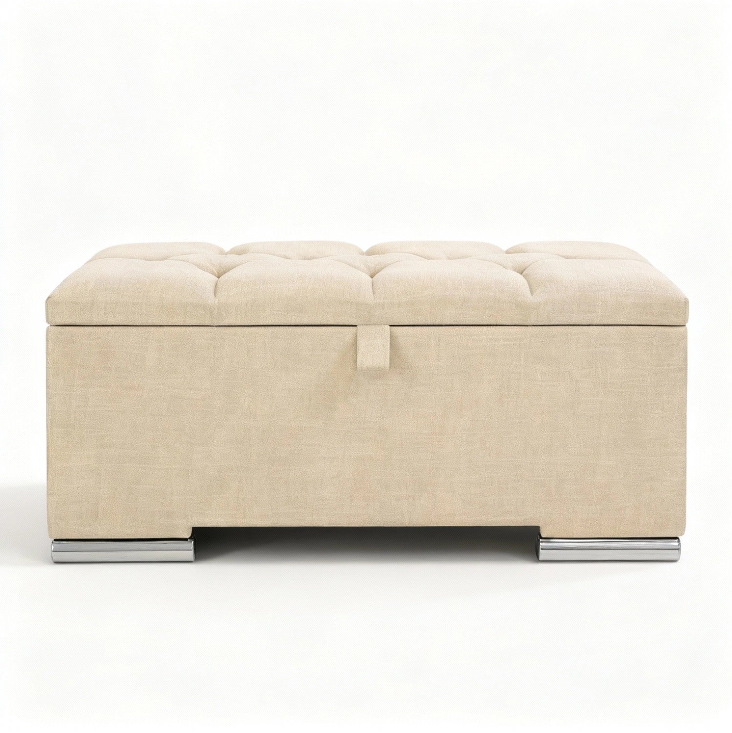 The Queen Ann Ottoman Box is a timeless storage solution designed with both elegance and practicality in mind. Its quilted, padded lid creates a softer, more traditional look, while the polished chrome feet add a contemporary edge – making it a versatile piece for any interior.